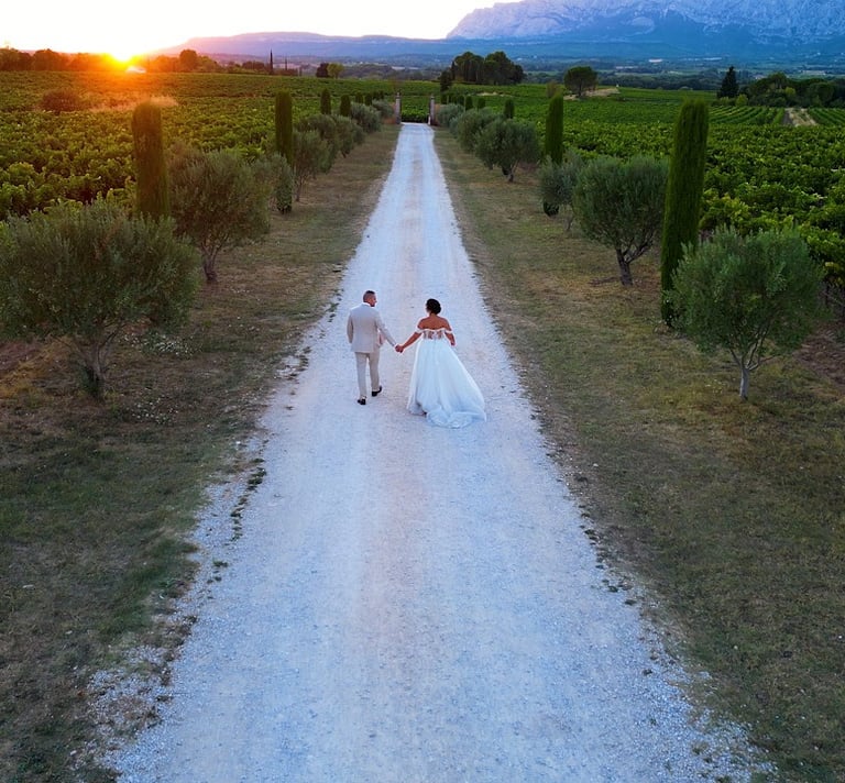 Revivez le mariage élégant de Laurie et Sébastien au Mas des Auréliens, à Pourrières. Un film de mariage lumineux et authentique capturé au cœur du Var.